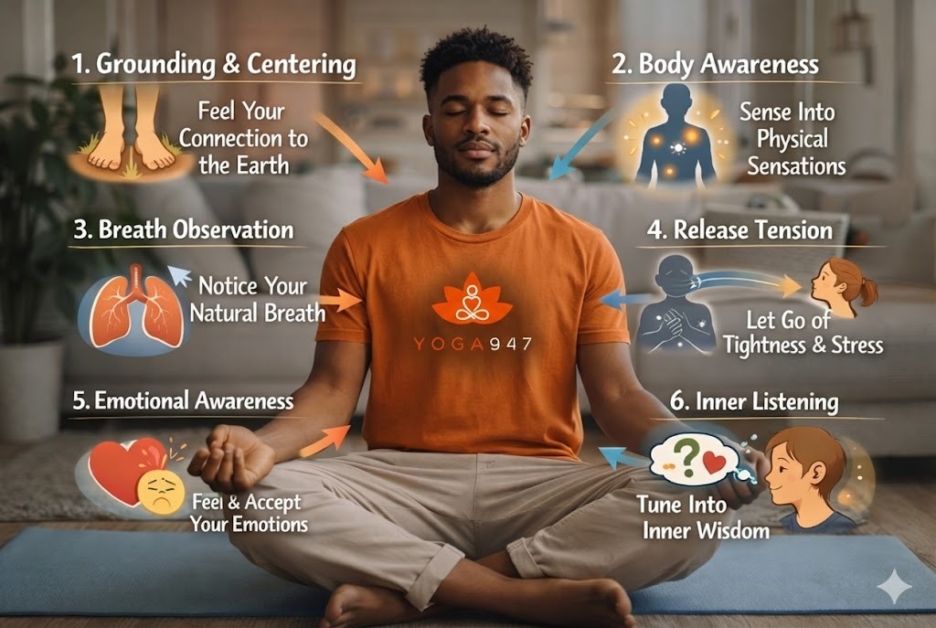 At Yoga947, we view somatic meditation as a compassionate bridge between mindfulness and embodied healing — especially for those who feel “stuck,” overwhelmed, or disconnected from their body.